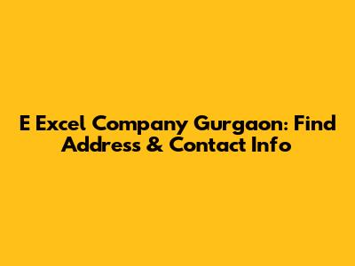 E Excel Company Gurgaon: Find Address & Contact Info