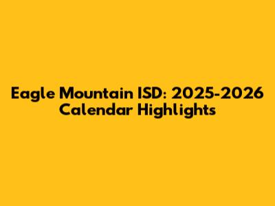 Eagle Mountain ISD: 2025-2026 Calendar Highlights