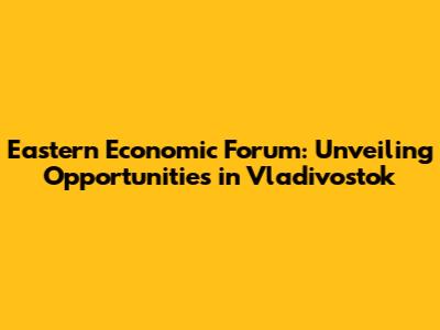 Eastern Economic Forum: Unveiling Opportunities In Vladivostok