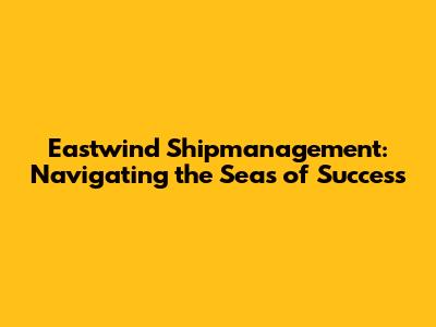 Eastwind Shipmanagement: A Deep Dive Into Maritime Excellence