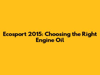 Ecosport 2015: Choosing The Right Engine Oil