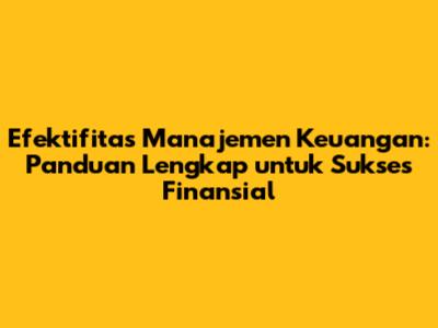 Efektifitas Manajemen Keuangan: Panduan Lengkap Untuk Sukses Finansial