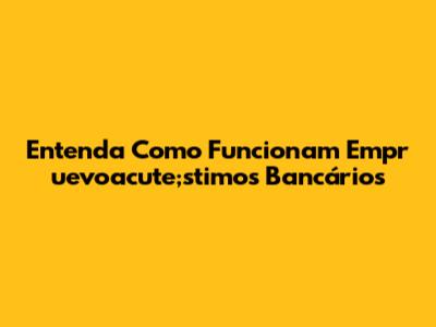 Entenda Como Funcionam Empr uevoacute;stimos Bancários