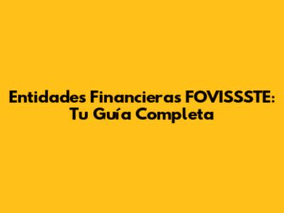Entidades Financieras FOVISSSTE: Todo Lo Que Necesitas Saber