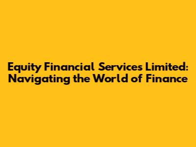 Hey guys! Ever feel like the world of finance is a giant maze? You're not alone! Today, we're diving into Equity Financial Services Limited, breaking down what they do and how they can help you. Think of this as your friendly guide to understanding a key player in the financial world. We'll explore their services, their significance, and why they matter to you, whether you're an experienced investor or just starting to dip your toes into the market.