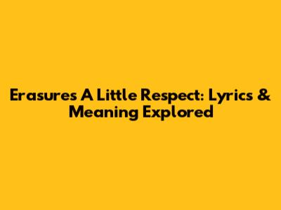 Erasure's 'A Little Respect': Lyrics & Meaning Explored