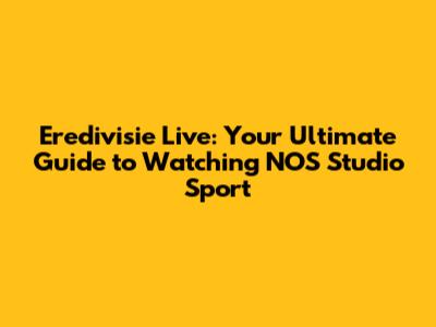 Eredivisie Live: Your Guide To Watching NOS Studio Sport