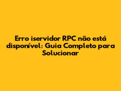 Erro 'iservidor RPC Não Está Disponível': Guia Completo Para Solucionar