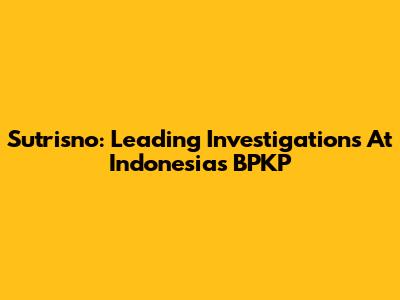 Sutrisno: Leading Investigations At Indonesia's BPKP