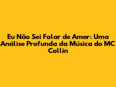 Eu Não Sei Falar De Amor: Uma Análise Profunda Da Música Do MC Collin