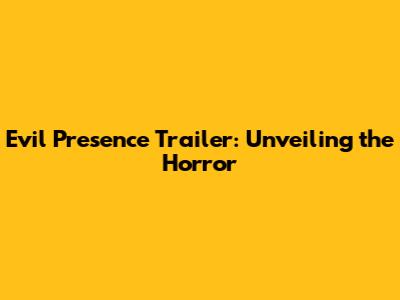 Evil Presence Trailer: Unveiling The Horror