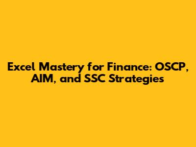 Excel Mastery For Finance: OSCP, AIM, And SSC Strategies