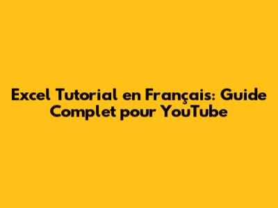 Excel Tutorial En Français: Guide Complet Pour YouTube