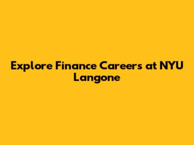 Explore Finance Careers at NYU Langone