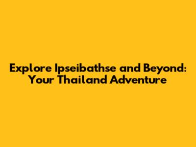 Explore Ipseibathse And Beyond: Your Thailand Adventure