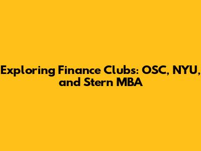 Exploring Finance Clubs: OSC, NYU, And Stern MBA