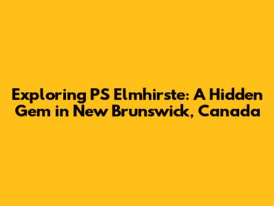 Exploring PS Elmhirste: A Hidden Gem In New Brunswick