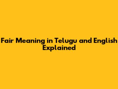Fair Meaning In Telugu And English Explained