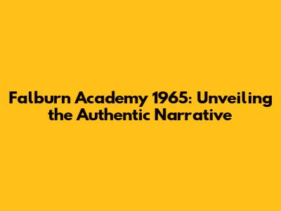 Falburn Academy 1965: A Look Back At The True Story