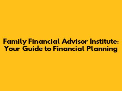 Family Financial Advisor Institute: Your Guide To Financial Planning