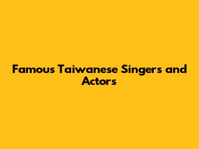 Famous Taiwanese Singers And Actors