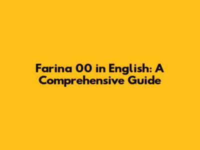 Farina 00 In English: A Comprehensive Guide