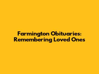 Losing someone we care about is never easy. In times of grief, finding information about funeral arrangements and memorial services can bring a sense of closure. If you're searching for Farmington obituaries, you've come to the right place. This article provides resources for locating death notices and remembering those who have passed in the Farmington community.
