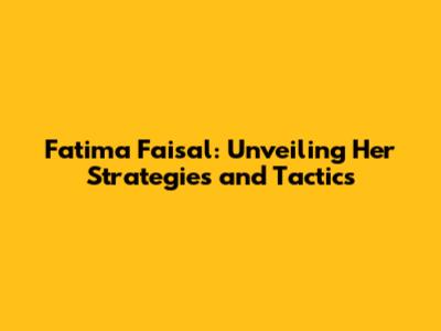 Fatima Faisal: Unveiling Her Strategies And Tactics