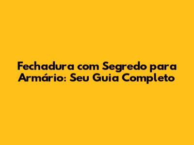 Fechadura Com Segredo Para Armário: Guia Completo E Eficiente