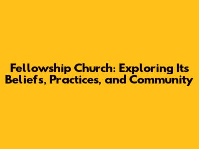 Fellowship Church: Beliefs, Practices, And Community