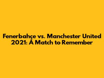 Hey guys, let's dive into a match that many football fans still talk about: Fenerbahçe vs. Manchester United from 2021. This game was packed with drama, unforgettable moments, and some seriously skilled plays. For those who need a refresher, or those who just want to relive the excitement, we'll break down everything that made this match a classic. We will explore the context, the key moments, and what made this game so special. Get ready to go back in time and experience the thrill of the game!