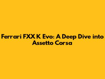 Hey guys, let's talk about something seriously cool: the Ferrari FXX K Evo in Assetto Corsa. This isn't just any car; it's a track-only beast, a symbol of extreme performance, and a virtual playground for driving enthusiasts. We're going to dive deep into what makes this car so special in the game, how to handle it, and why it's a favorite among sim racers. Get ready to rev your engines, because we're about to take a thrilling ride!