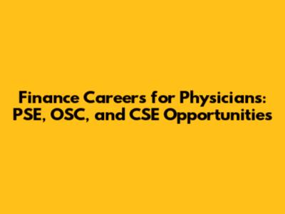 Finance Careers For Physicians: PSE, OSC, And CSE Opportunities