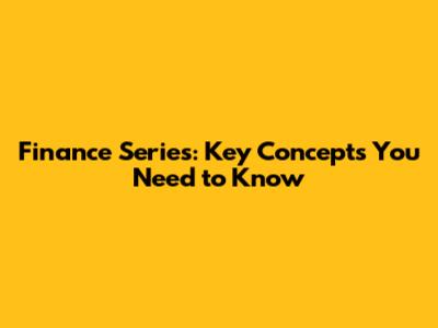 Finance Series: Key Concepts You Need To Know