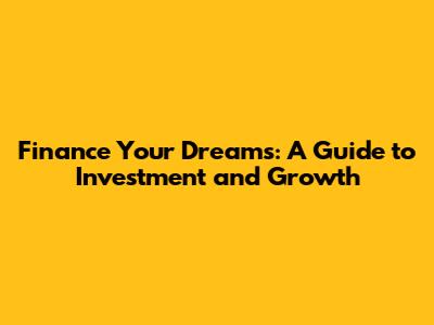 Finance Your Dreams: A Guide To Investment And Growth