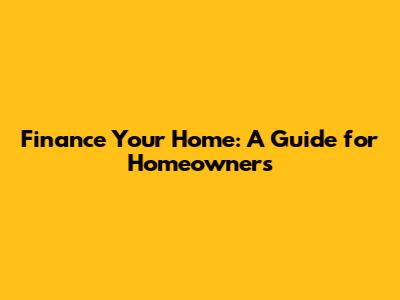 Finance Your Home: A Guide For Homeowners