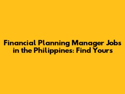 Where to Find Financial Planning Manager Jobs in the Philippines
