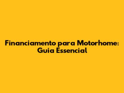 Financiamento Para Motorhome: Guia Essencial