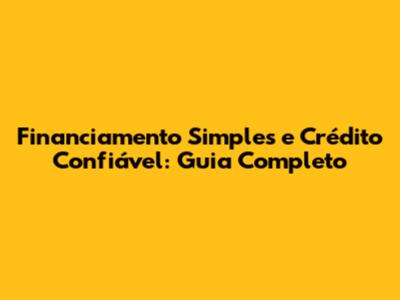 Financiamento Simples E Crédito Confiável: Guia Completo