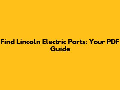 Find Lincoln Electric Parts: Your PDF Guide