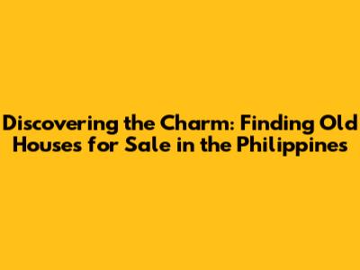 Find Old Houses For Sale In The Philippines
