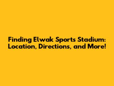 Finding Elwak Sports Stadium: Location, Directions, And More!