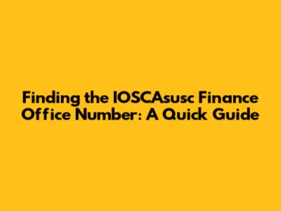 Why Knowing the IOSCAsusc Finance Office Number Matters
