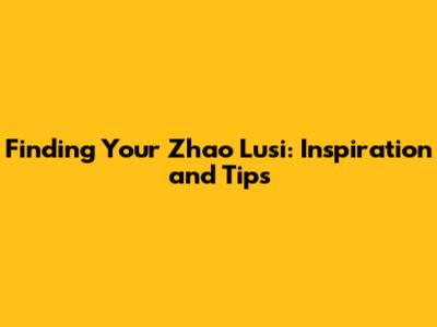 Finding Your Zhao Lusi: Inspiration And Tips