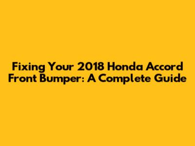 Fixing Your 2018 Honda Accord Front Bumper: A Complete Guide