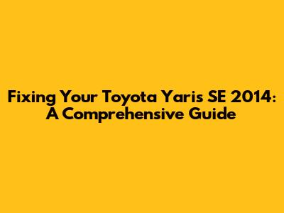 Fixing Your Toyota Yaris SE 2014: A Comprehensive Guide