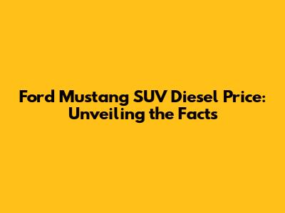 The price of a Ford Mustang SUV would depend on various factors, including the engine type, trim level, and optional features. Generally, SUVs command a higher price than sedans or coupes, due to their versatility and larger size. Considering the Mustang's brand recognition and the premium features it would offer, the SUV version would likely be positioned in a competitive price range. Pricing for a diesel variant, if it were to exist, could vary depending on the specific diesel engine and the overall market demand. To get a more accurate idea of the price, it's a good idea to research similar SUVs in the market and compare their features and pricing. Keep in mind that prices can also vary depending on the region and any applicable taxes or fees.