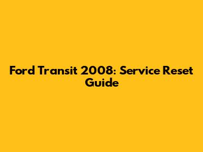 Ford Transit 2008: Service Reset Guide
