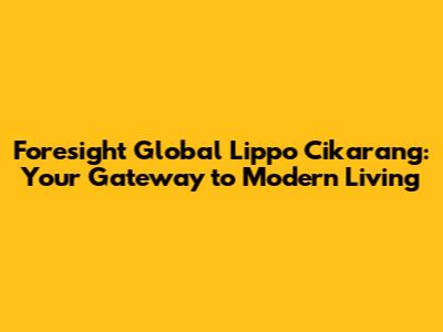Hey guys! Ever heard of Foresight Global in Lippo Cikarang? If you're on the hunt for a new place to call home or an investment opportunity that's got serious potential, you've gotta check this out. Lippo Cikarang is already a buzzing hub, and Foresight Global is adding a whole new level of awesome to it. Let's dive into what makes this place so special and why it might just be the perfect fit for you.