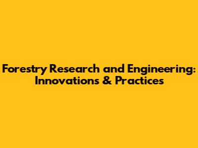 Forestry Research And Engineering: Innovations & Practices